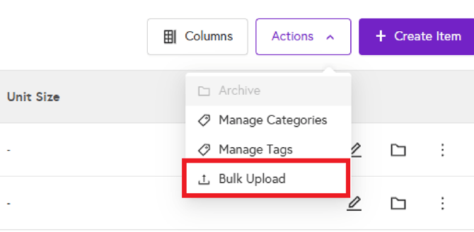 This guide will walk you through the Bulk Upload functionality for uploading items.