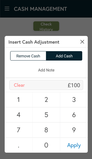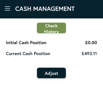 A place to manage your cash position, check your cash history and make adjustments. This can be connected to a cash drawer, or simply a place to reconcile your cash takings