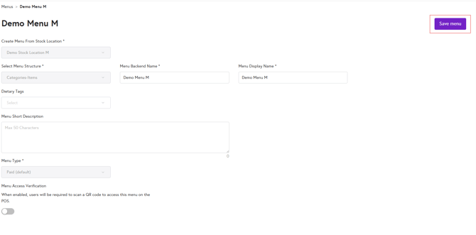• Create Menu from Stock Location (only if the Stock Location module is active)