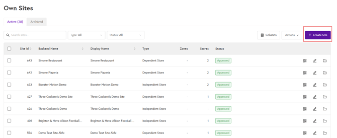 - Click Create Site to open the new site form.