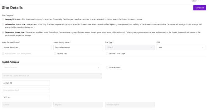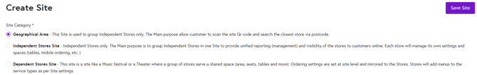 - Site Type: Define the type of site:
