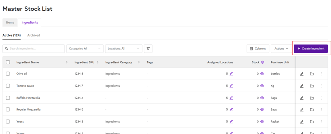 Creating Ingredients When Stock Location Is Enabled (Master Stock List)