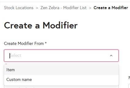- Under Create Modifier From you can either select Item or Custom Name.