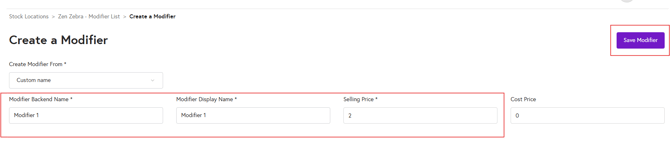 - After adding all the details click on 'Save Modifier' and your modifier will be created and added in the modifier list.