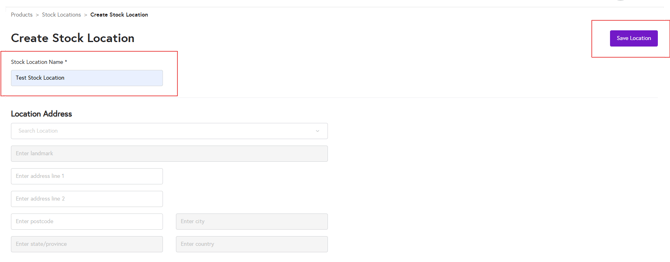 4. Enter the Stock Location Name (required), Address(option) and click on Save Location. Your Stock Location is created.