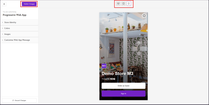 - Once satisfied with your design, click Publish Change to apply the changes.