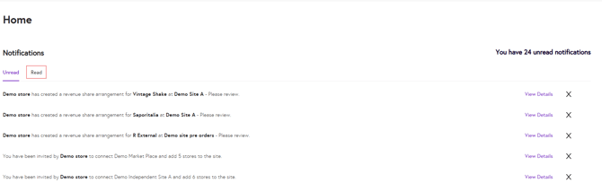 3. To view your previous notifications, click the Read tab.