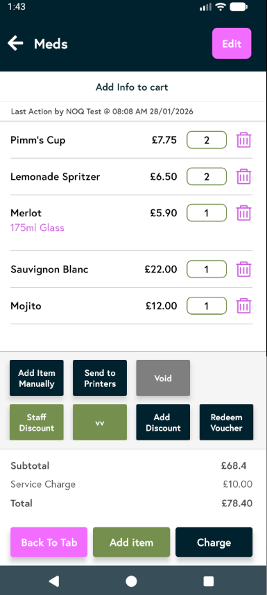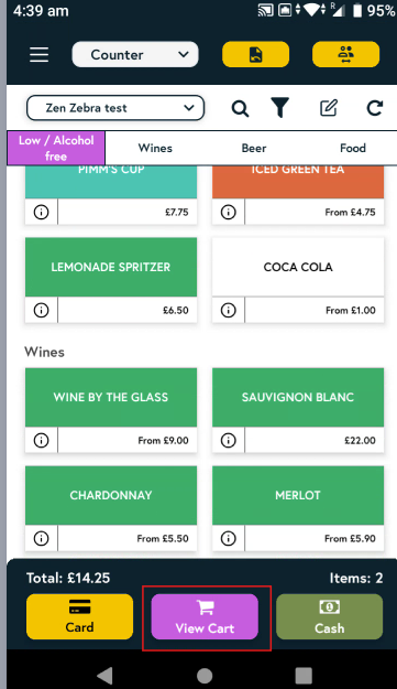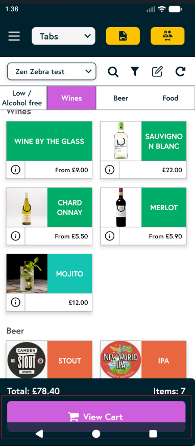 - You’ll be taken to the items menu. Tap the item you want to add and it will be added to the tab automatically. Once you’ve added the required items, tap View cart to view them.