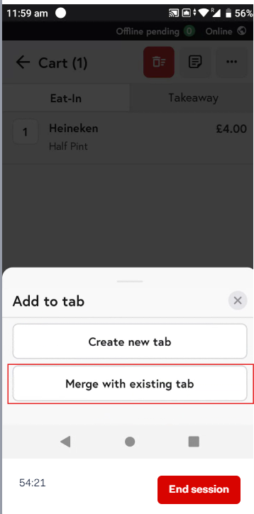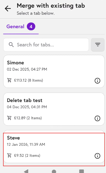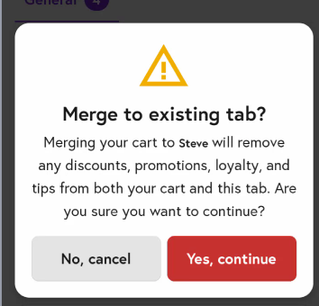 8. You will see a notification confirming that the cart has been merged with the selected tab.