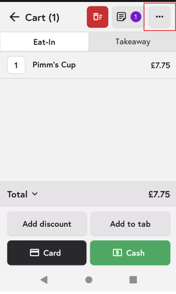 4. In the Cart screen, tap the three dots in the top-right corner.