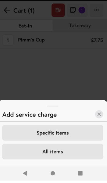 6. You can choose to add a service charge to specific items in your cart or to all items, depending on your preference and the service charge will be added.