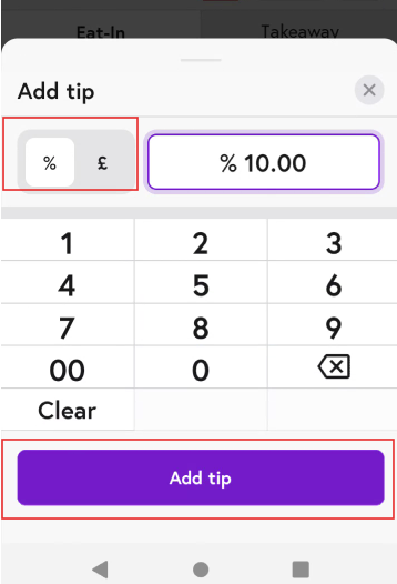 6. You can either add '%' or '£' based on what you would like and then click on 'Add Tip'.