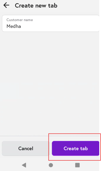 6. It will ask u to add a customer name and then click on 'Create Tab'.