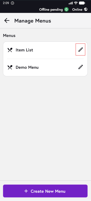 6. Search for the name of the item you would like to edit, then click on the pencil icon to edit that item.