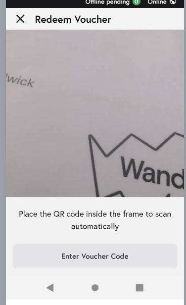 6. When you tap on Redeem voucher, your camera will open. Scan the customer’s voucher, or alternatively, manually enter the voucher code.