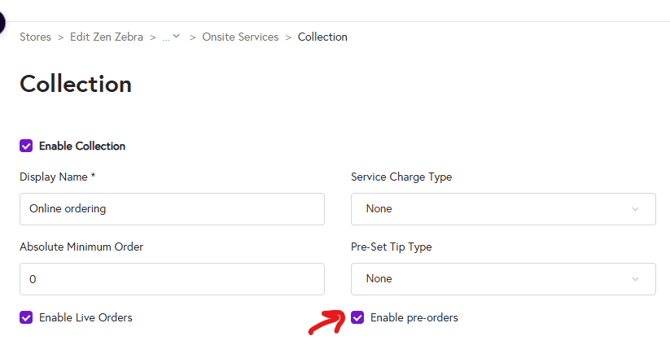 • Make sure the menu is assigned to your enabled service type (e.g. Collection)
