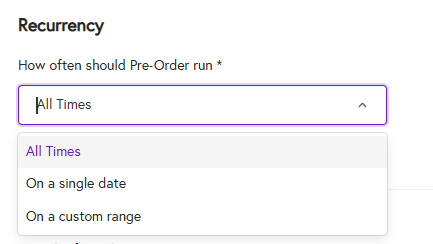 1. Start Accepting Pre-Orders From: Set how many days in advance customers can start ordering (most clients set this to 7 days).