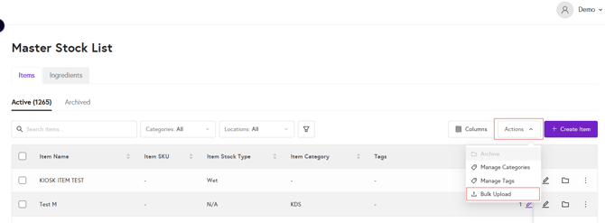 3. From the Actions drop-down, Go to Bulk Upload 📤.