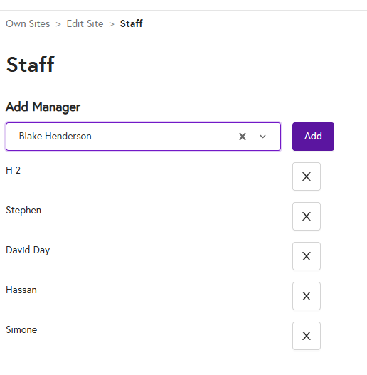 5. From the dropdown, select the managers you would like to add and click Add. You can assign multiple managers to a single site.