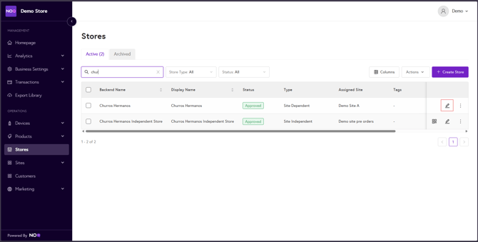 8. After saving, from sidebar navigate to Stores. Click on pen icon to see store profile.
