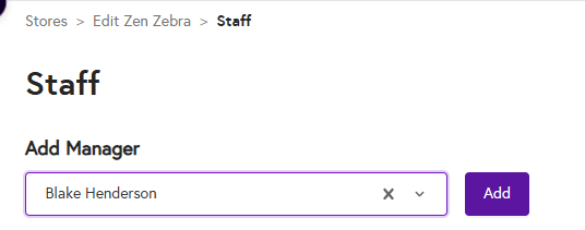 - The Add button will be enabled, click on it to Add the Manager to your store