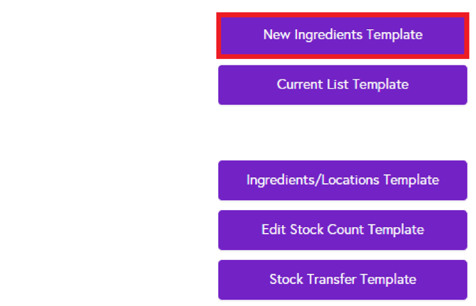 Rather than create several individual ingredients, we recommend taking advantage of the Bulk Upload function. This quick guide will demonstrate how to use the New Ingredients Template.