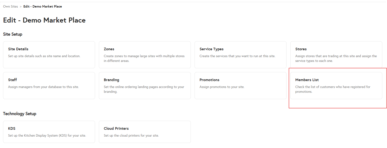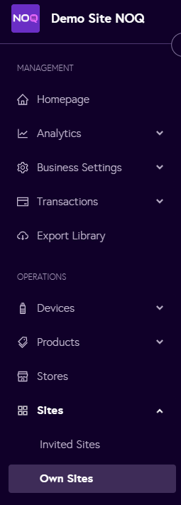 2. Navigate to Sites -> Own Sites.