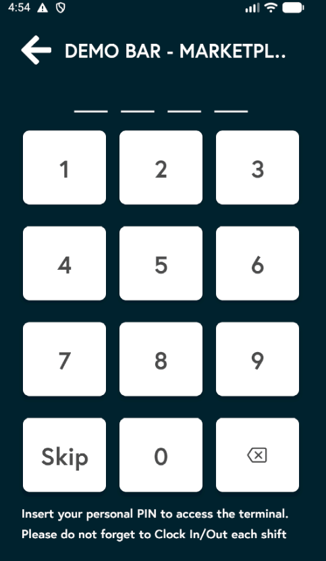 2. Press Skip or enter your Pin if you already have this set up for your store.
