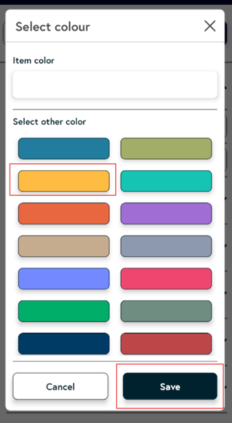 5. Choose a colour from the palette for your selected item, then click Save.