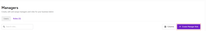 2. From the sidebar, go to User Management > Managers. Before creating a manager, you must first create a role for them. To create a new role, click on the Role tab.