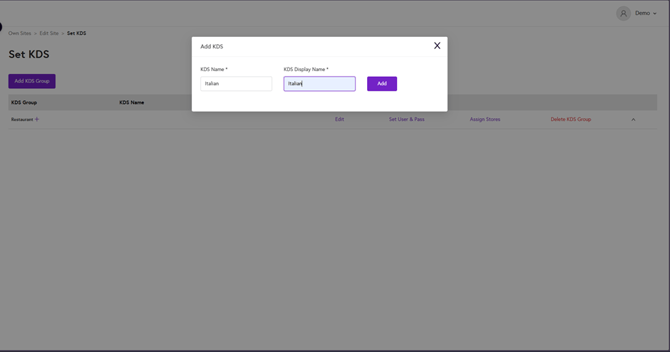 Site-wide KDS creation allows you to create new KDS, assign them to multiple stores