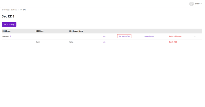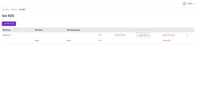 9. Navigate back to set KDS screen to assign stores by clicking on Assign stores.