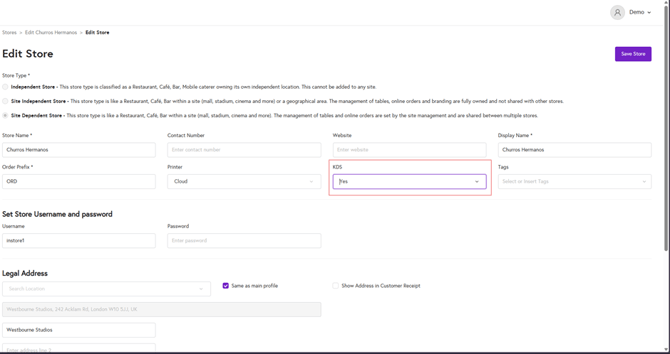12. Make sure under KDS, yes is selected. If not, select yes and click save store.