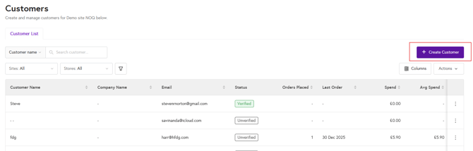 3. Click on 'Create Customer'.