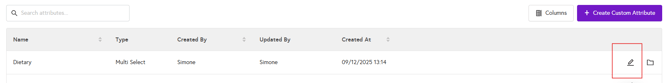 1. When you are on the custom attributes page, locate the custom attribute you want to edit by searching for it using the search bar.