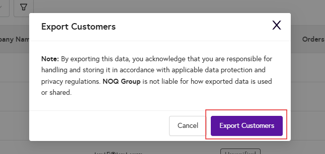 4. Then a dialog box will appear click on 'Export Customers' again.