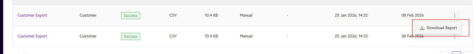 7. Then, to download, click on the three dots next to your export and select ‘Download report’ to download your customer report.
