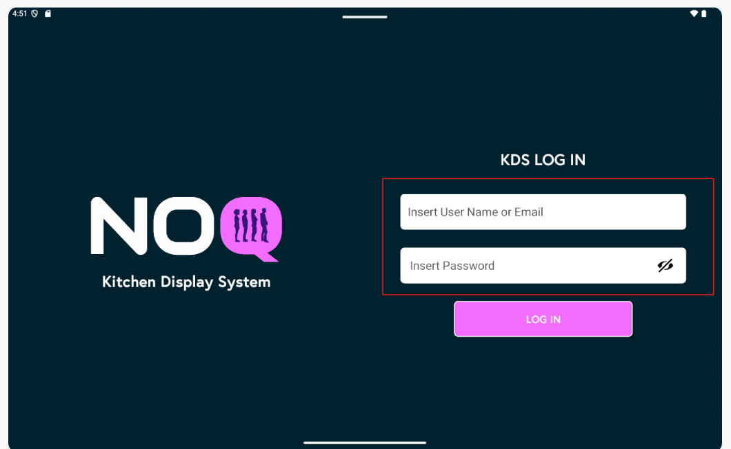 How To Login To KDS App This guide will show you how you ca login to KDS app 1. Open the KDS app on your tablet. 2. Enter the username and password. 3. Tap Log in to access the KDS app.