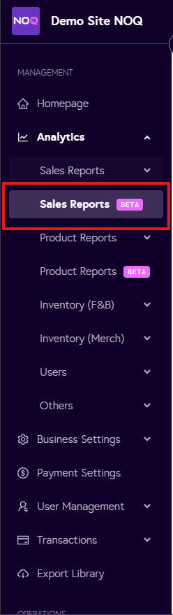 This guide explains how to use the new sales reporting feature in the NOQ backend portal.