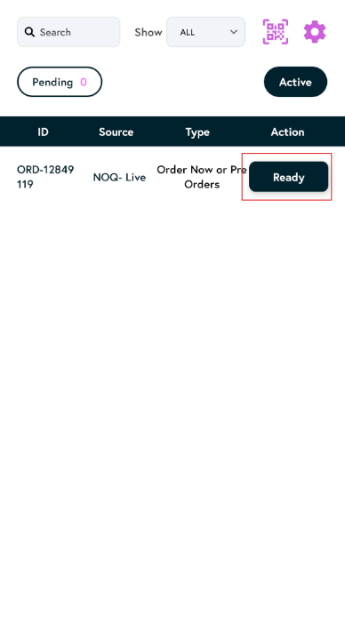 5. Click on Ready when order is ready. It will send customer notification of collecting order.
