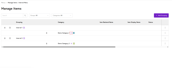 6. Click on the + icon next to the grouping name to add a category to that grouping.