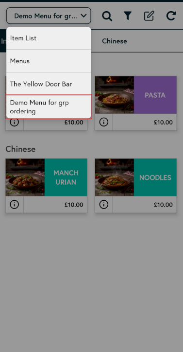 3. From the item list drop-down, select the menu that uses the Grouping Categories Items structure.