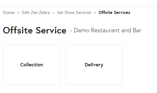 8. Follow the same process to enable service types for Offsite Services. Select either Collection or Delivery, tick the checkbox to enable it, and then enter the required details.