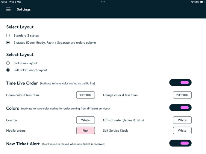 - Layout: If using online ordering, set to 3 States to ensure these orders display.