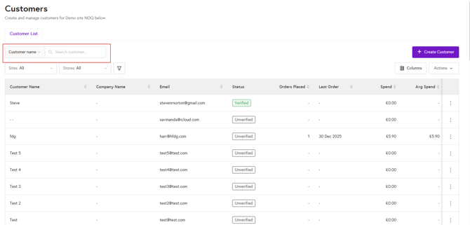 3. Here you can view all your created customers. To find a specific customer, enter their name in the search box and their record will appear.