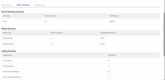 - Loyalty Summary : You can see how many points customer earned from your loyalty program & also how many points they redeemed.