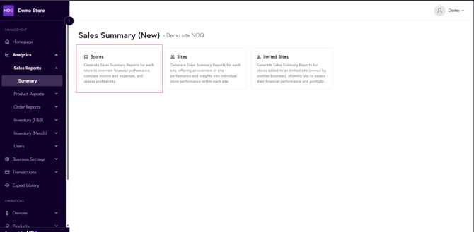 2. From the sidebar, go to Analytics > Sales Reports > Summary.