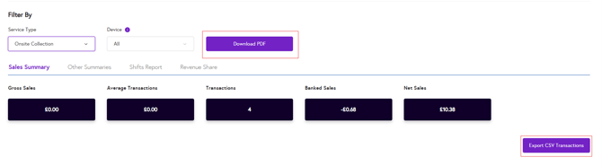 9. You can download the Sales Summary report as a PDF or CSV file by clicking Download PDF or Export CSV as required.