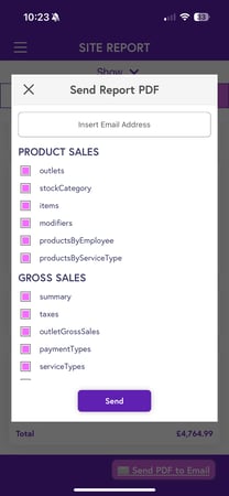 1. To share the report, tap Send PDF to Email.