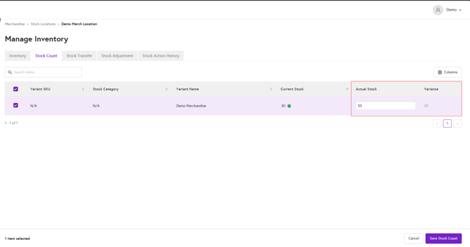 When you approve, the values in the Actual Stock column will replace the Current Stock values in the Inventory tab. Any items you untick before approving will be excluded and their stock will remain unchanged.